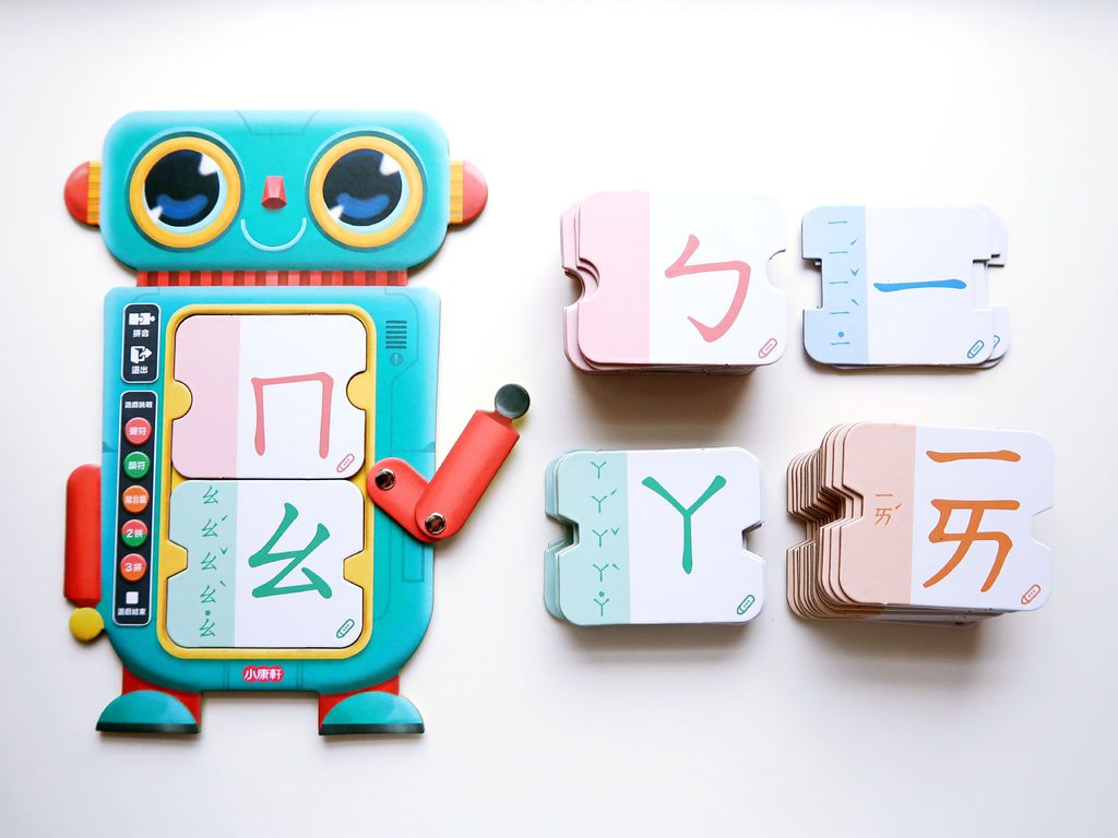 小康軒拼音機器人是 一套系統化的注音符號學習輔助教具,玩法輕鬆活潑,讓孩子不再畏懼注音,尤其是難度最高的拼音。建議適用年齡是3~8歲,無論是學齡前幼兒自學注音、小學低年級需要國語課輔助教具、或是海外家長想自己在家教小孩中文,這套教材都是實用又好玩的好幫手。