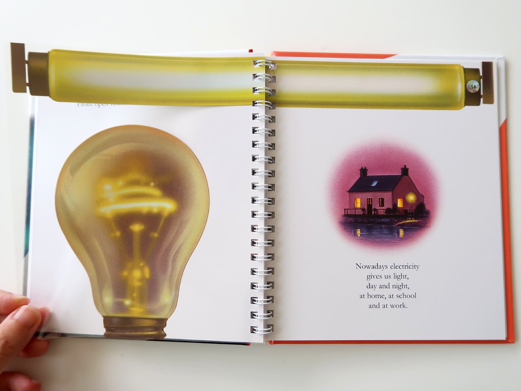 翻過雙面膠片,燈泡和燈管就會亮起來。