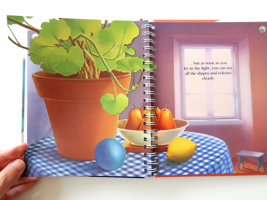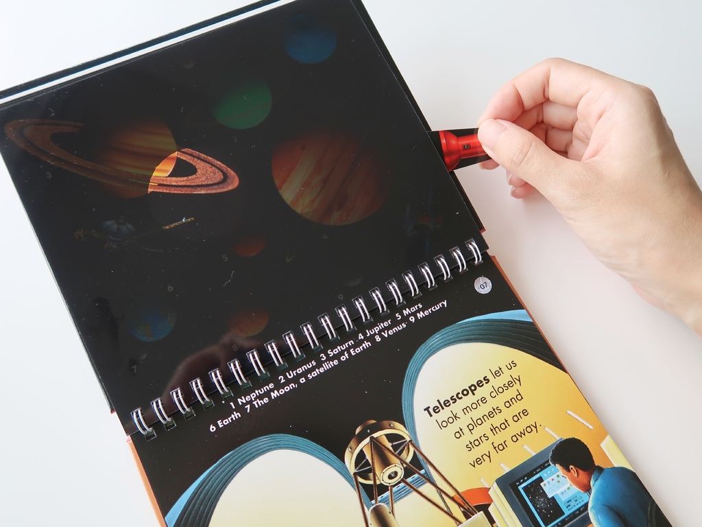 其中「In the Sky 空中世界」,還搭配紙製的「神奇手電筒」,變身童書界近年最流行的「手電筒膠片書」,搭配深色膠片使用,「照亮」插圖的細部,提升孩子的注意力,增加互動樂趣。