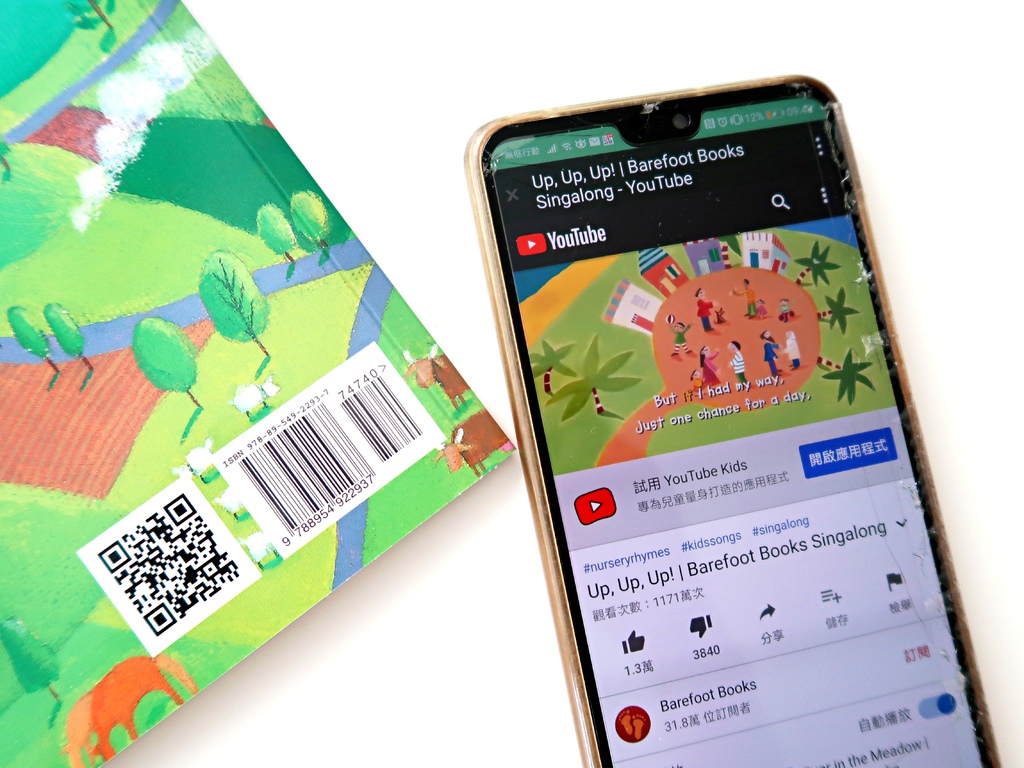 ■ 歌曲動畫影片:Barefoot官方YouTube頻道提供免費的歌曲動畫影片,可以自行搜尋歌名,部分繪本背面也提供QR Code,掃碼後可直接點連結看影片。(請忽略我的手機螢幕有多破爛)
