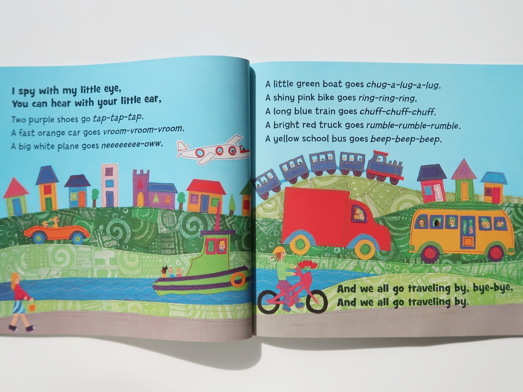 故事以交通工具和顏色為主題,描述搭乘各種交通工具去上學的情景。內容以重複句型和狀聲詞設計,讓學齡前幼兒輕鬆認識各種交通工具、顏色和聲音。