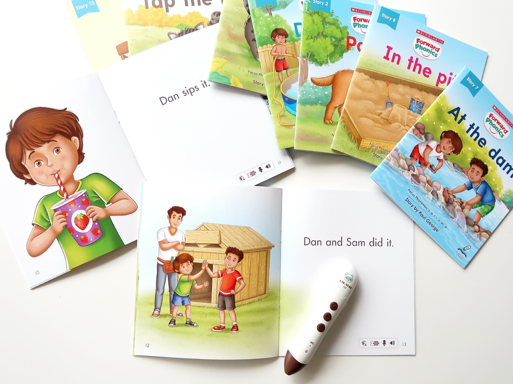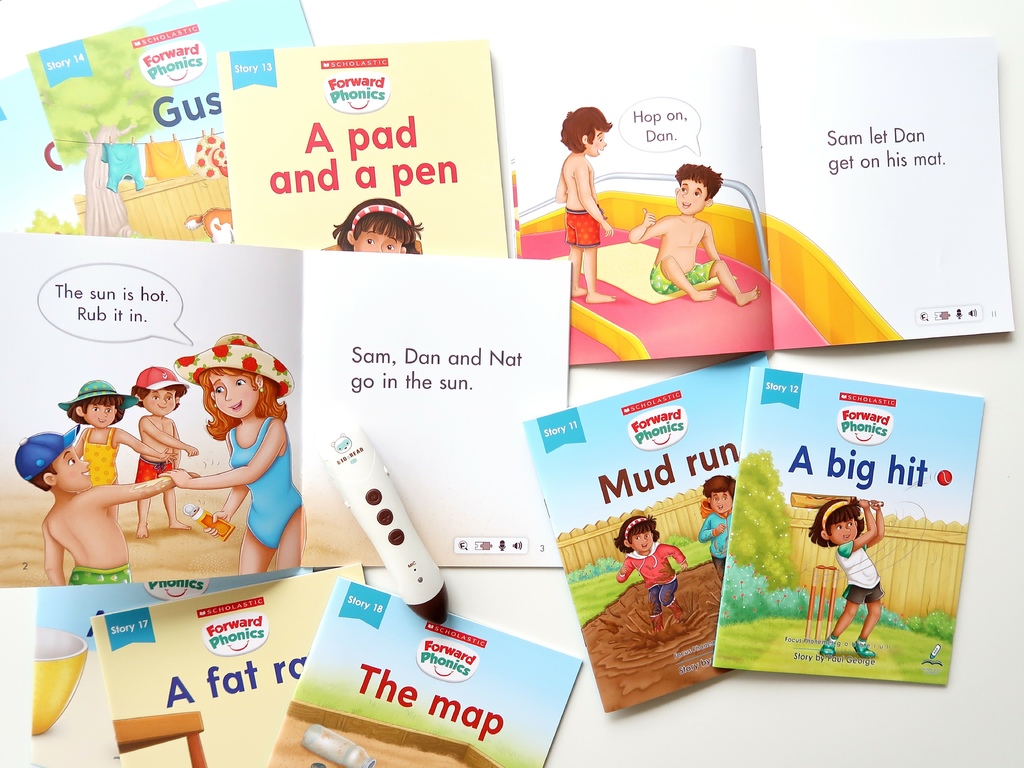 市面上的英文自然發音讀本百百款,KidsRead 點讀筆創辦人的女兒剛轉到國外讀書時,就是靠 Forward Phonics 無痛打好閱讀基礎,從半文盲變成一隻快樂的英文小書蟲,讓她決心將這套超好用的教材引進台灣,努力爭取許久後,才向 Scholastic 出版社簽下台灣獨家點讀版權。(嗚嗚真的等太久,為什麼要等我兒都長大學完 CVC 了,才推出這麼棒的教材啊)