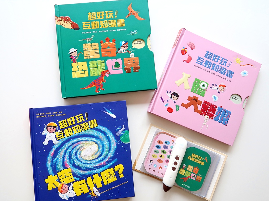 【KiDiDOC 超好玩!互動知識書】系列第二輯的三大主題,包括探究恐龍時代大小知識的《驚奇恐龍世界》、認識人體各種器官運作的《人體大發現》、探索浩瀚宇宙奧秘的《太空有什麼?》。