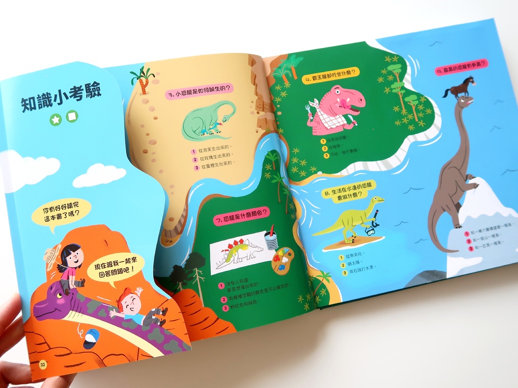 參觀完驚奇恐龍世界大展後,你是不是跟小瑪和盧卡一樣對恐龍更了解了呢?打開點讀筆挑戰「知識小考驗」,一起回答問題吧!