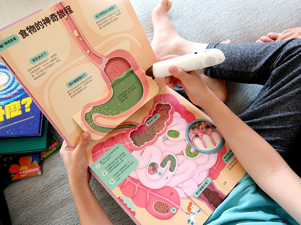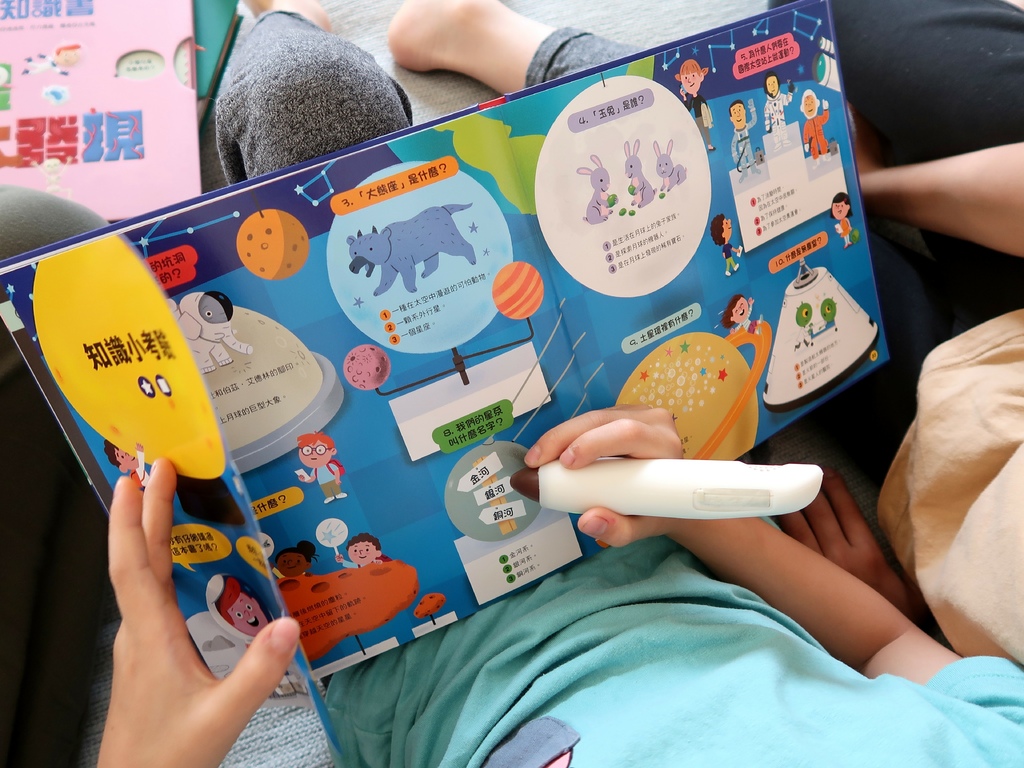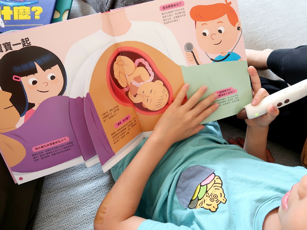 第二輯的三本樣書寄到家時,兄弟倆齊聲歡呼,顧不得功課沒寫完,立即拆箱翻書,用點讀筆播放情景故事音檔,一頭栽進KiDiDOC的神奇世界。