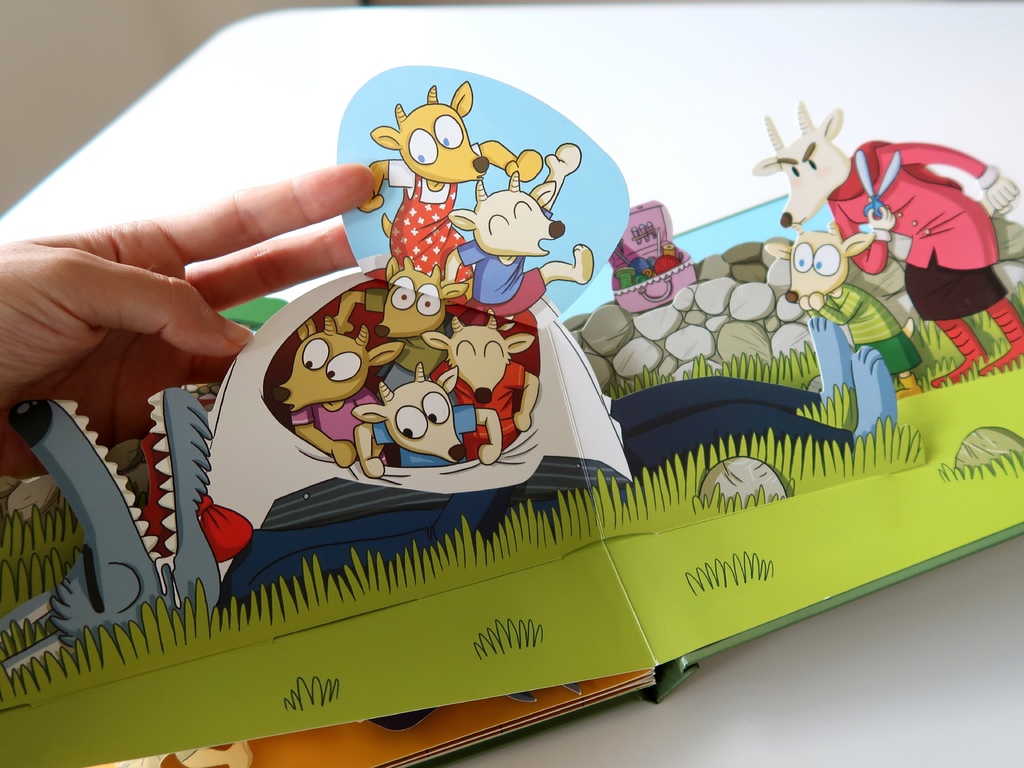 上掀翻頁,七隻小羊就會從大野狼的肚子中逃出來: