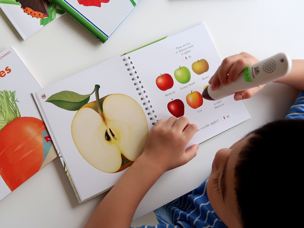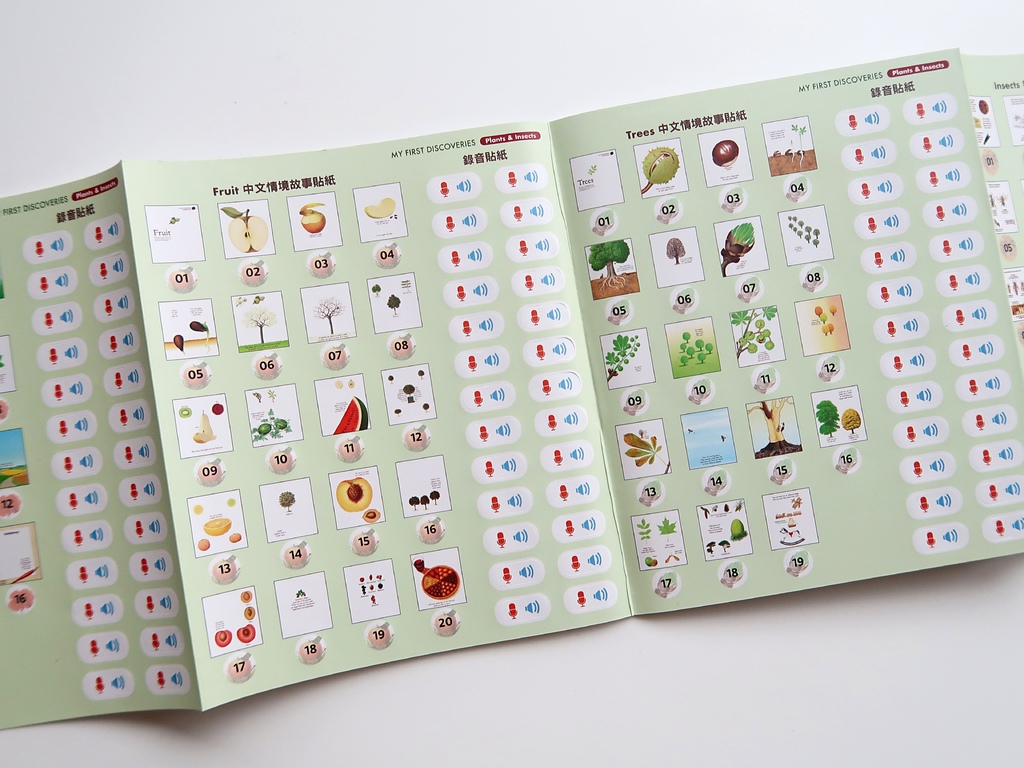 台灣版的My First Discoveries 的內文和音檔仍保留原汁原味的英文,但為了更貼近台灣家長和孩子的共讀需求,特別加碼錄製了劇場版的中文情境點讀音檔與可自行錄音的錄音點讀貼紙。