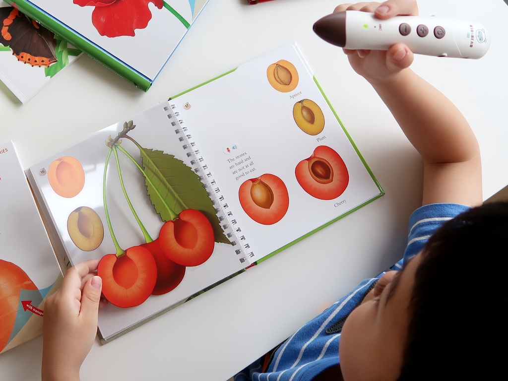 這套科普童書,我會推薦給幼兒園中大班至小學生,四歲以上的孩子更能完全理解書中資訊。由於這系列的書都是厚紙+膠片設計,耐操不易折損,四歲以下幼兒也可以在家長陪伴下嘗試用輕鬆的態度一起玩。愛吃的幼兒可以從餐桌上常見的水果蔬菜開始共讀,昆蟲迷會對蝴蝶昆蟲這兩本愛不釋手,花朵樹木則是美到連成人都想珍藏。
