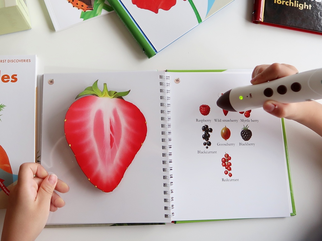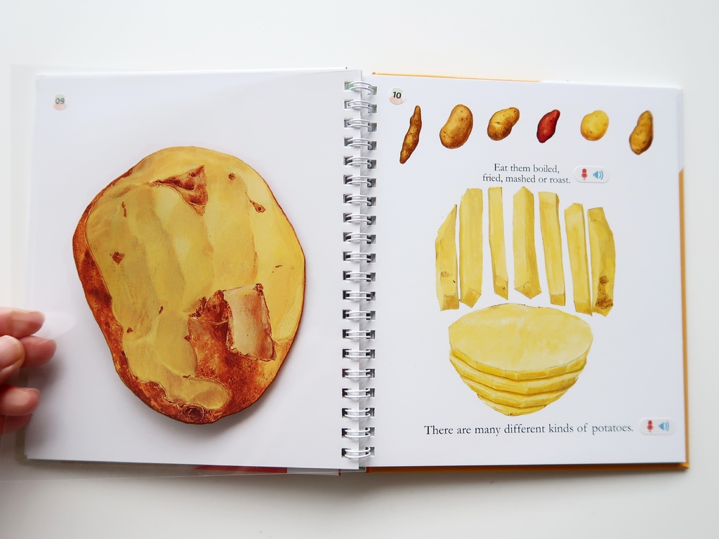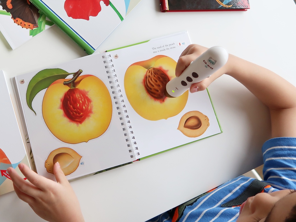 你認得出來這個綜合水果塔裡,藏著哪些不同的水果嗎?用點讀筆點不同的水果,就能揭曉謎底:草莓/桃子/黑莓/杏桃/李子/蘋果。