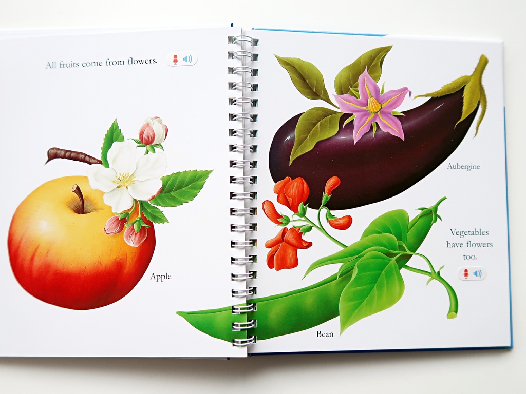 所有的水果都是由花朵變成的,蔬菜也會開花。你們知道蘋果花、茄子花和碗豆花這麼美嗎?