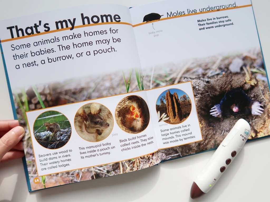 實際使用後,我發現這套精心製作的英文點讀書,除了當成與學齡前幼兒親子共讀的知識繪本,也很適合國小學童當成英文科普讀本,提升生物科普領域的字彙量與自主閱讀能力,使用年限很長。真心推薦給幼兒園 3~6歲和小學低中年級7~10歲的動物迷!