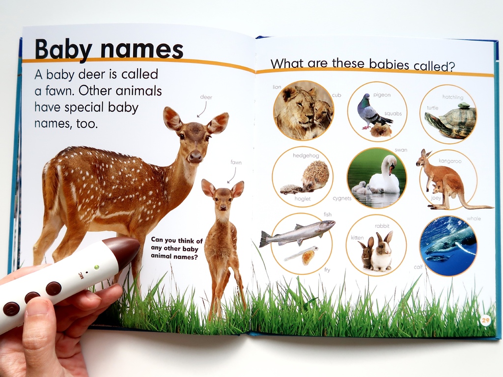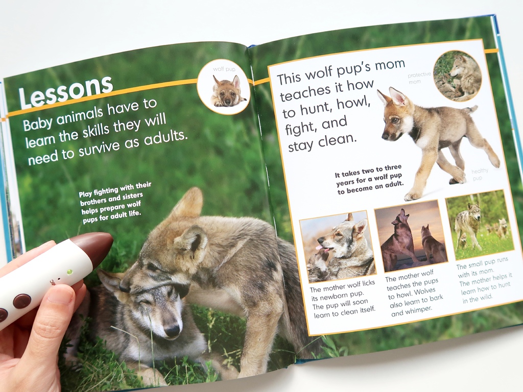 寶哥梅弟從小就對動物主題的童書著迷,但我們家收藏的大部分都是可愛畫風的繪本,不夠寫實,孩子不小心就會指鹿為馬,也不瞭解這些動物在真實世界的生活狀態。開始上英文課後,跟老師討論到喜愛的動物,也很難用英文描述牠們的特性。所以我一直想幫兄弟倆找有真實照片的英文動物科普書,最好還是有聲版的,讓他們自然學會動物領域的相關英文用法。