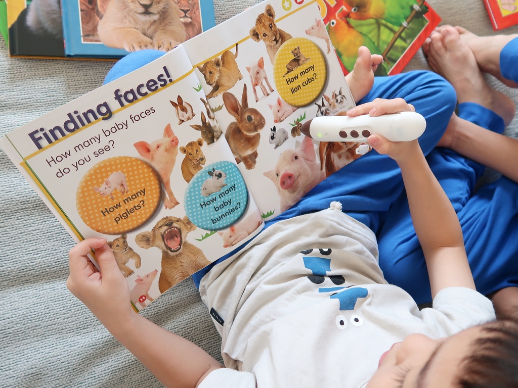 與 KidsRead 聯名推出的 Discover More 點讀版,精選英文為母語的優質配音員,錄製標準清晰的美式發音,點讀封面可朗讀全書,內頁圖文也可分段點讀出聲。共讀時遇到不會唸的字句,可以立即派出點讀筆救援,家長忙了一天沒力氣唸書時,孩子也可以自己點來聽。
