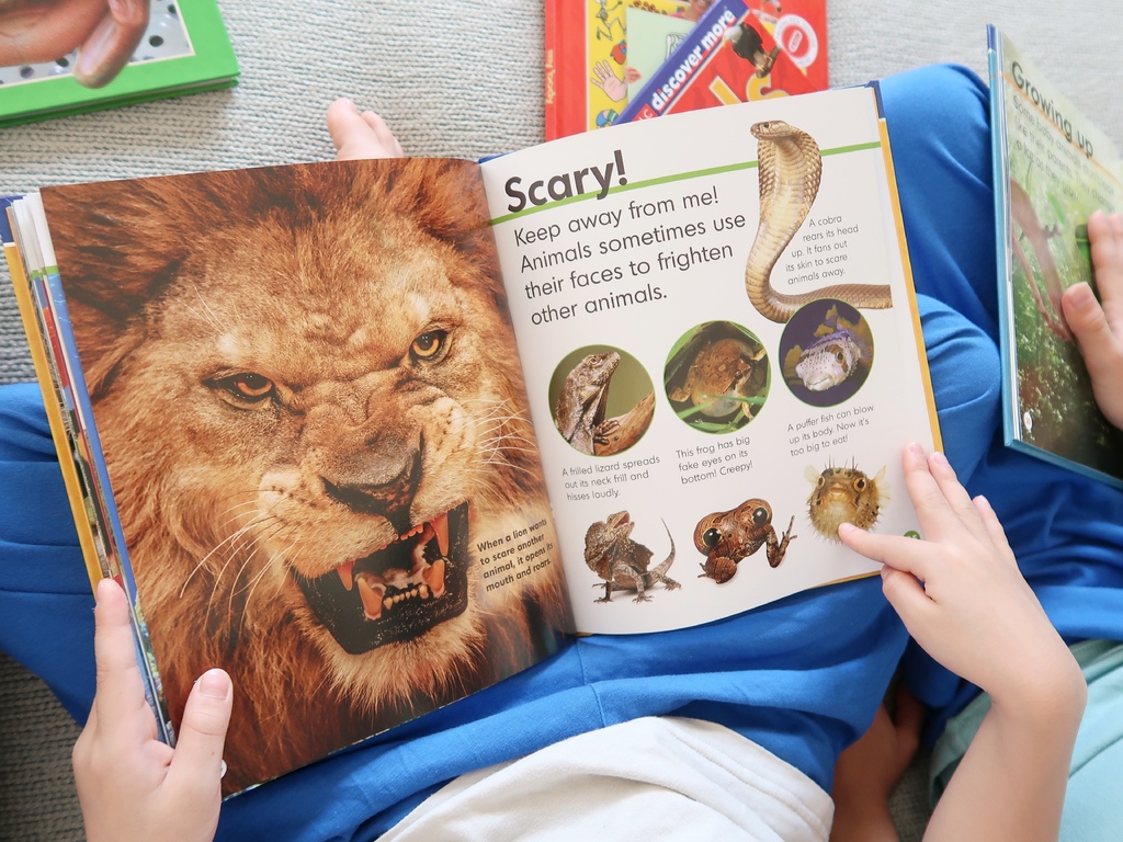 還真給我找到了!當KidsRead窗口告訴我,他們即將和英文教育童書界最大咖的Scholastic 出版社合作,推出有大量真實圖片+科普知識+ 英文點讀功能+延伸遊戲活動本的 「Discover More 科普點讀套書」,主題正是我兒最愛的動物與人體,我忍不住偷偷歡呼了一下。