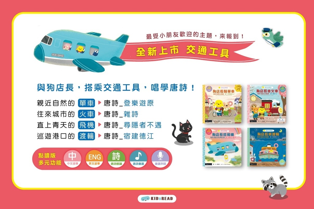 酪梨壽司|兒童唐詩|孩子的第一套古典詩詞啟蒙繪本:「與狗店長樂讀詩」之交通工具|KidsRead點讀筆推薦