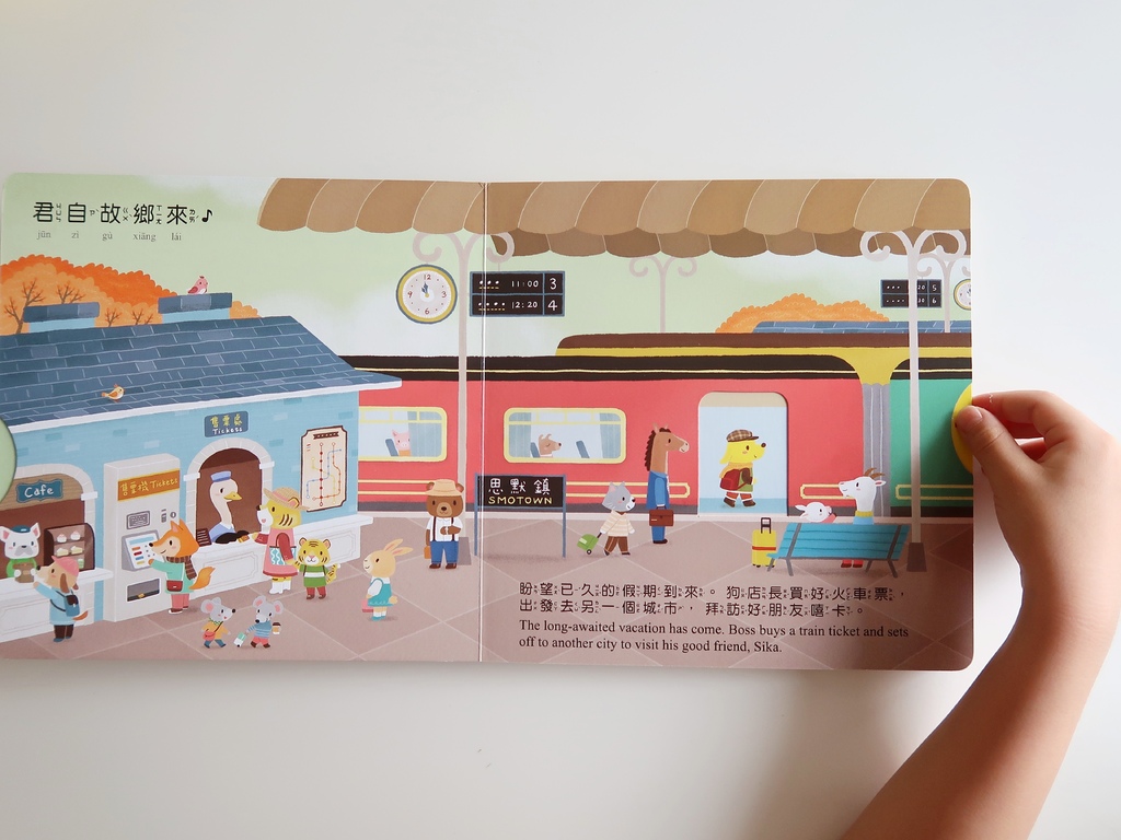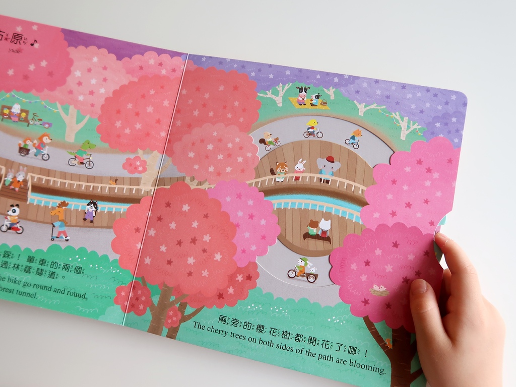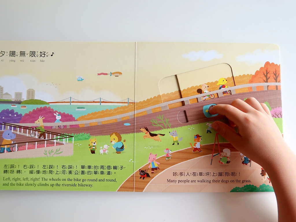 這套耐操好玩又賞心悅目的硬頁操作書,出版社建議適讀年齡是0~7歲,我個人覺得最適合1~4歲親子共讀。書中的小故事包含中英雙語,唐詩文句也附上注音符號與漢語拼音, 讓小小孩能從聽父母讀、跟著讀,長大了主動自己讀。