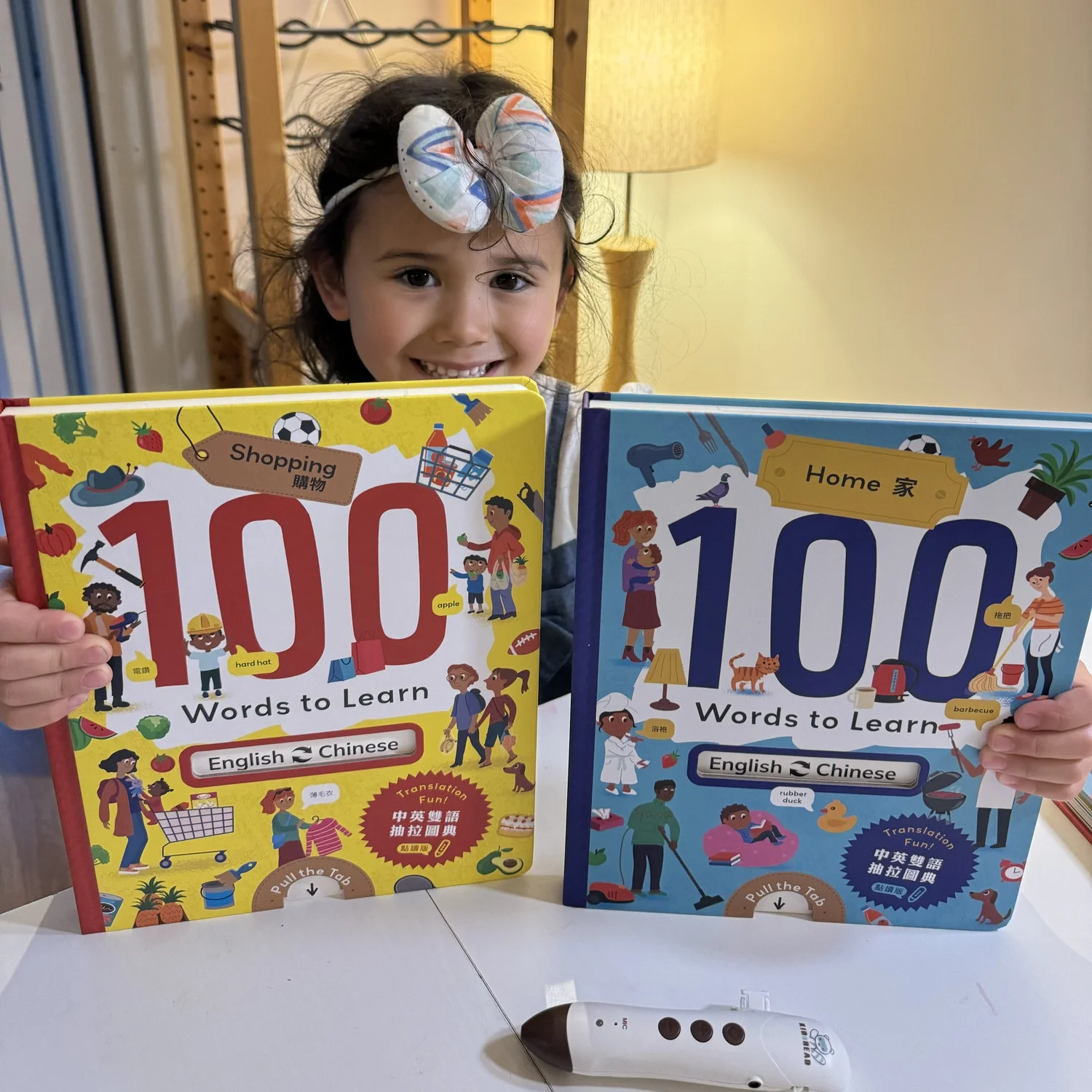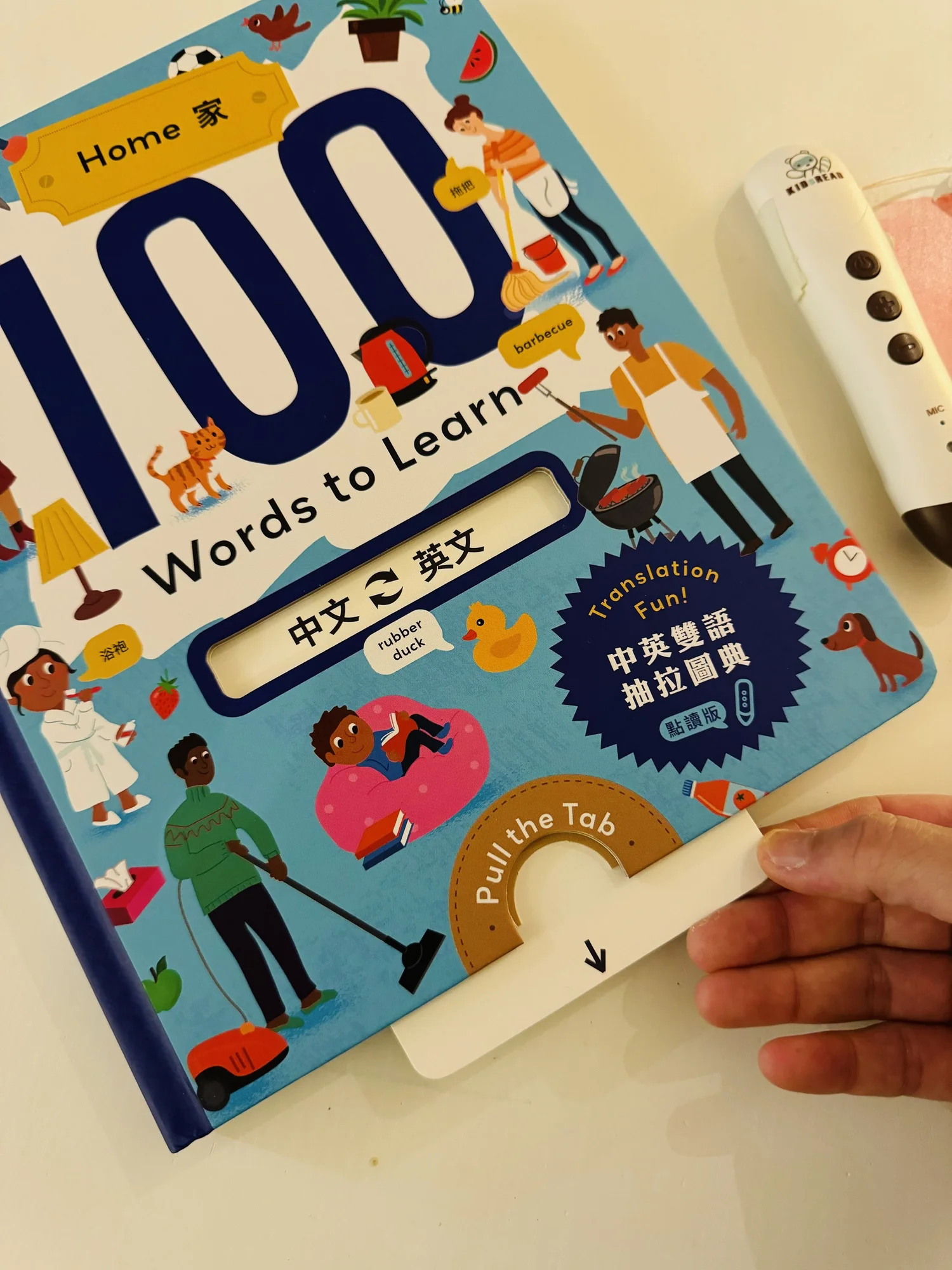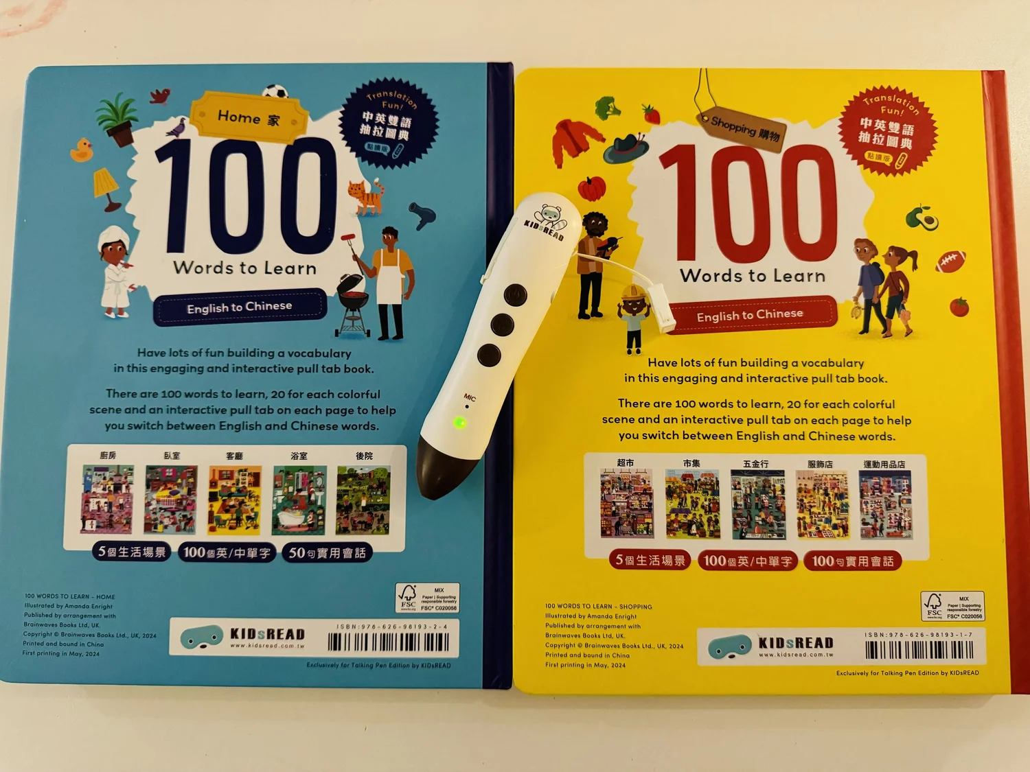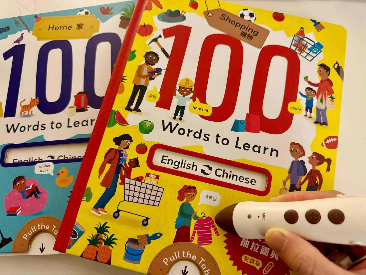 100 Words to Learn 最先是由我們英國童書出版社 Brainwaves Books 出版,於2024年與台灣 KidsRead 點讀筆聯名發行中英雙語遊戲圖典。