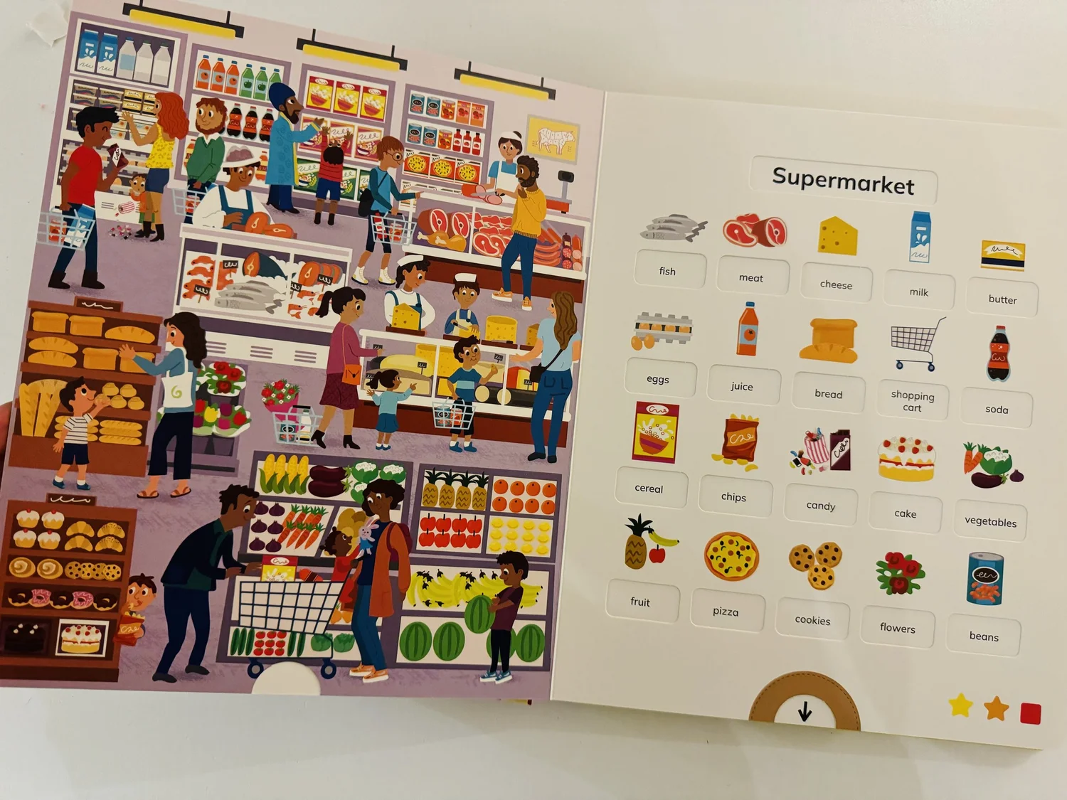 兩本書的主題分別為「購物」(Shopping)與「家」(Home),讓小小孩從日常生活開始啟發語言認知學習。