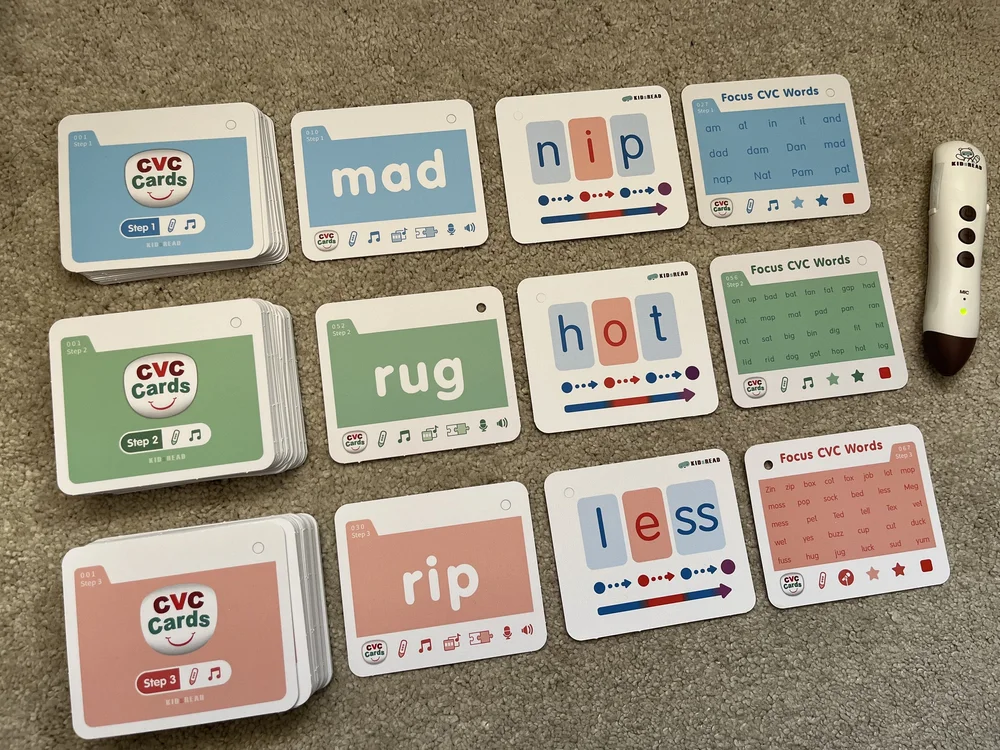 CVC並不是非英語國家創造出來的東西喔!反而是很道地的母語學習過程,像是我們英國也是這樣的方式在教孩子們認讀,原本我就有想上網替孩子買以上的CVC活動教材(上圖),讓他們沒事的時候在家玩中學。但最後選擇用了KidsRead的 Forward Phonics,不但想要的字卡都齊全,還意想不到收入了32本相關繪本!!!有種物超所值的感覺(驚艷)